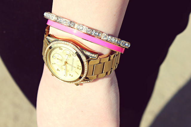 t-shirt ~ kate spade // tweed jacket ~ jcpenney // cord pants ~ jcpenney // oxford flats ~ target // crossbody bag ~ h&m (old) // sunglasses ~ charlotte russe (old) // watch ~ michael kors // bangle ~ forever 21 (old) // bangle ~ kate spade // ring ~ kate spade (old) // earrings ~ kate spade (similar) // bracelet ~ forever 21