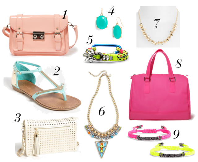 Spring is coming upon us, which means it’s time to start stocking up on some Spring pieces! These are some of my favorites right now (all from Nordstrom and Forever 21), and I’d love to include them in my Spring wardrobe! As I mentioned last week, I’m obsessed with everything neon, so I had to include some of that in this post. One of my favorites is the neon crystal bungee bracelet. I love the combination of the sparkle and sporty style–totally unexpected!